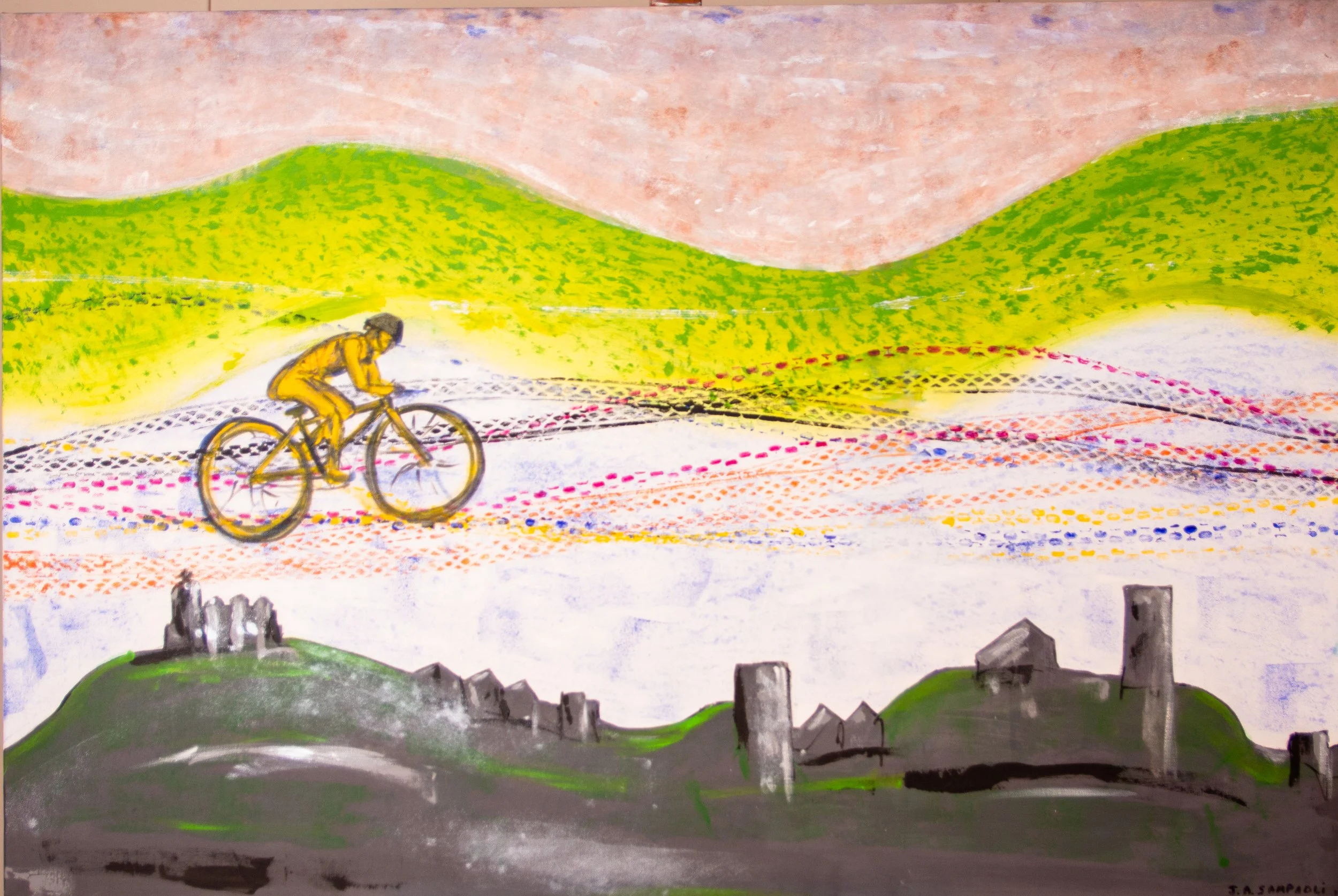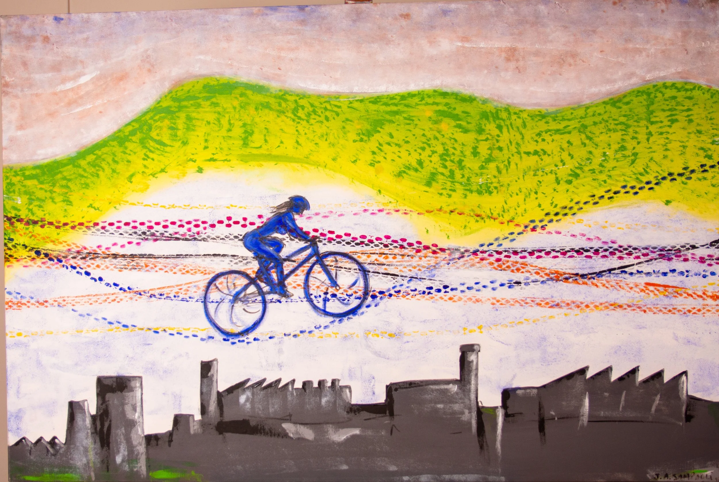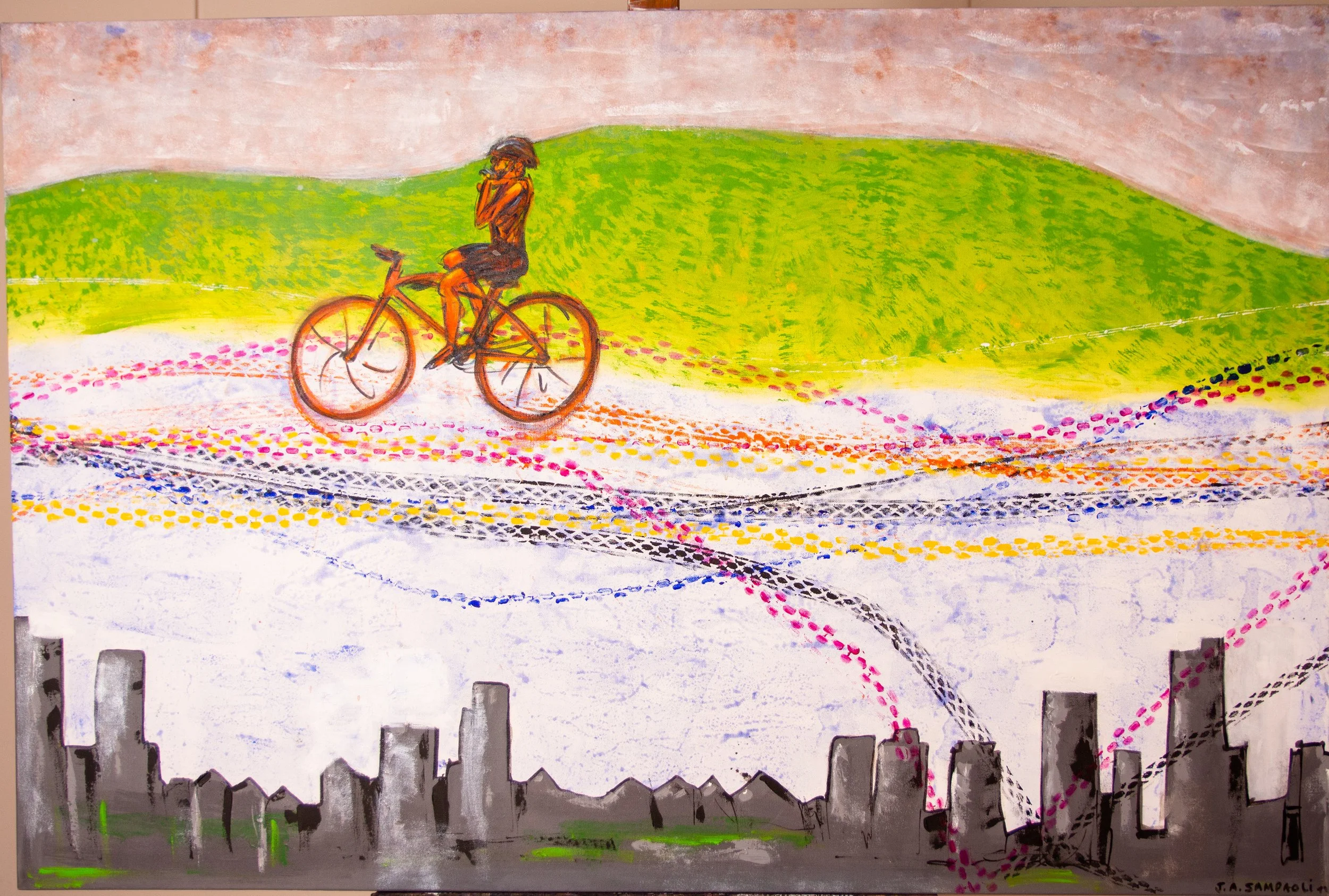 Serie Bicicletas: Cuadros de Alberto SampaoliLa libertad en dos ruedas capturada en el lienzo. Bienvenidos a la serie de arte sobre bicicletas de Alberto Sampaoli. Una mirada artística al mundo del ciclismo donde el color y la forma rinden homenaje a este ícono del movimiento.